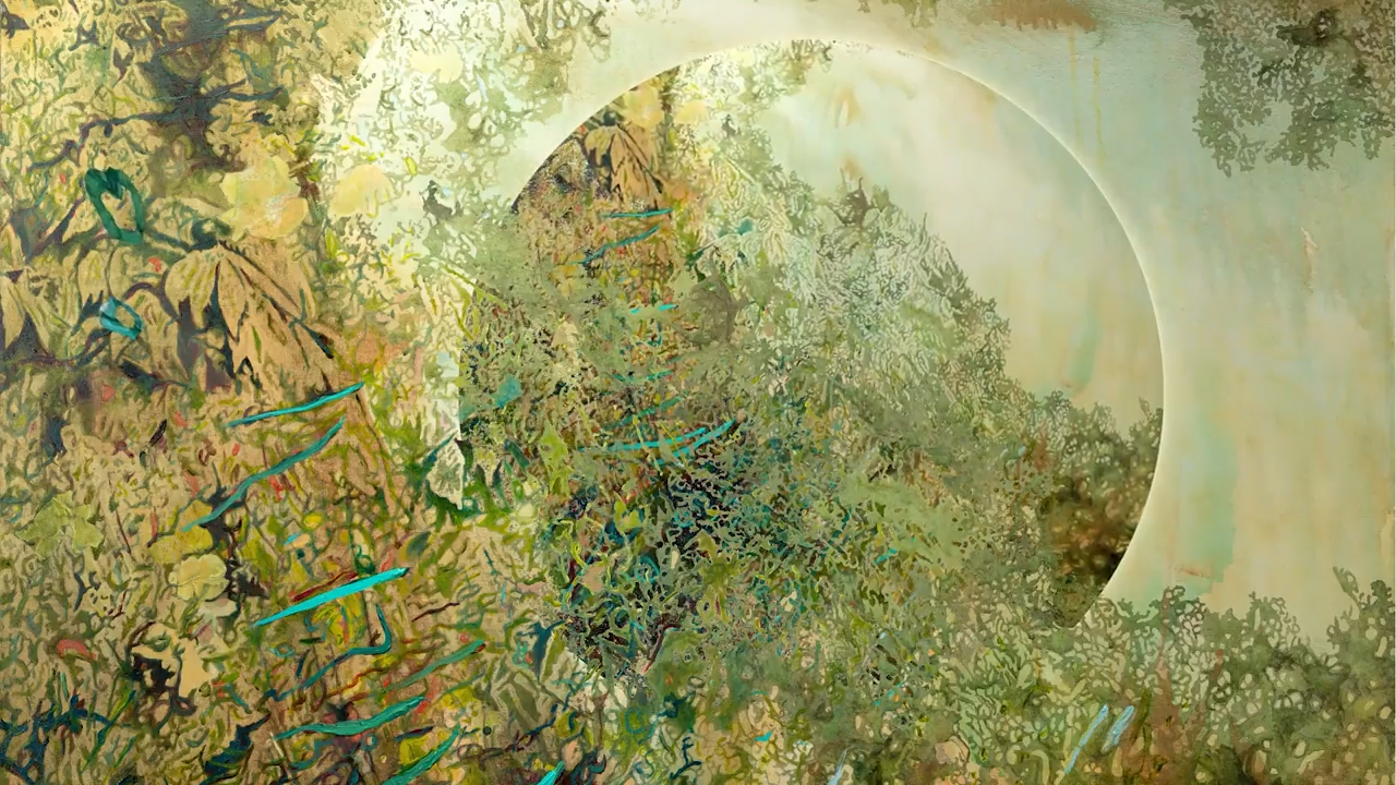 The video animation uses details from over 20 paintings by Cameron Davis. Their abstractions of plant patterns with moving elements created in partnership with Animator William Tipper, suggest a living Earth and Universe: core to the Oratorio content.